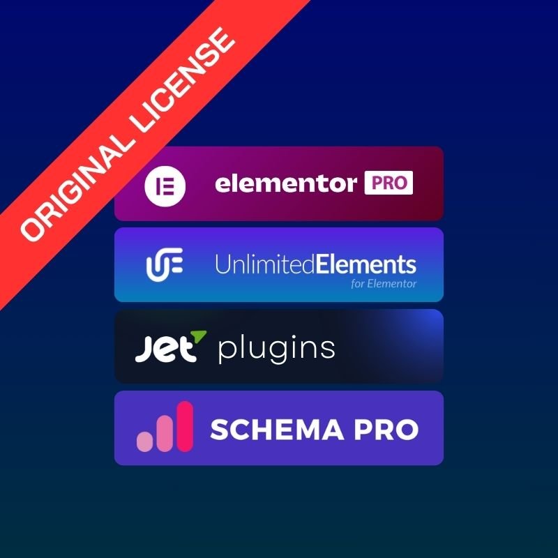 1x Elementor Pro (1-Year) 1x Schema Pro (1-Year) 1x Unlimited Elements (1-Year) 1x Jet Plugins (1-Year)